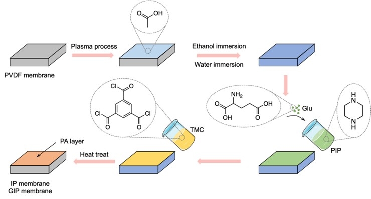 (2)将处理后的膜进行界面聚合反应,其中水相溶液掺入一定量的谷氨酸;